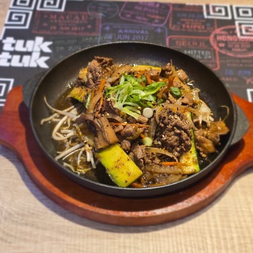 Hong Kong Street Noodles: Increíbles noodles de trigo salteado con ternera marinada, vegetales frescos y nuestra espectacular salsa de soja dulce. (alergenos: gluten, crustáceos, pescado, soja y sulfitos)