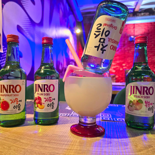 En las calles iluminadas de Seúl, donde los letreros de neón parpadean como recuerdos viejos, Jihoon descubrió una pequeña taberna escondida entre edificios modernos. Dentro, el aire olía a grill y a nostalgia. En el mostrador, una botella de Soju Retro brillaba bajo la luz cálida: verde, sencilla, como las que su abuelo solía tener en casa.