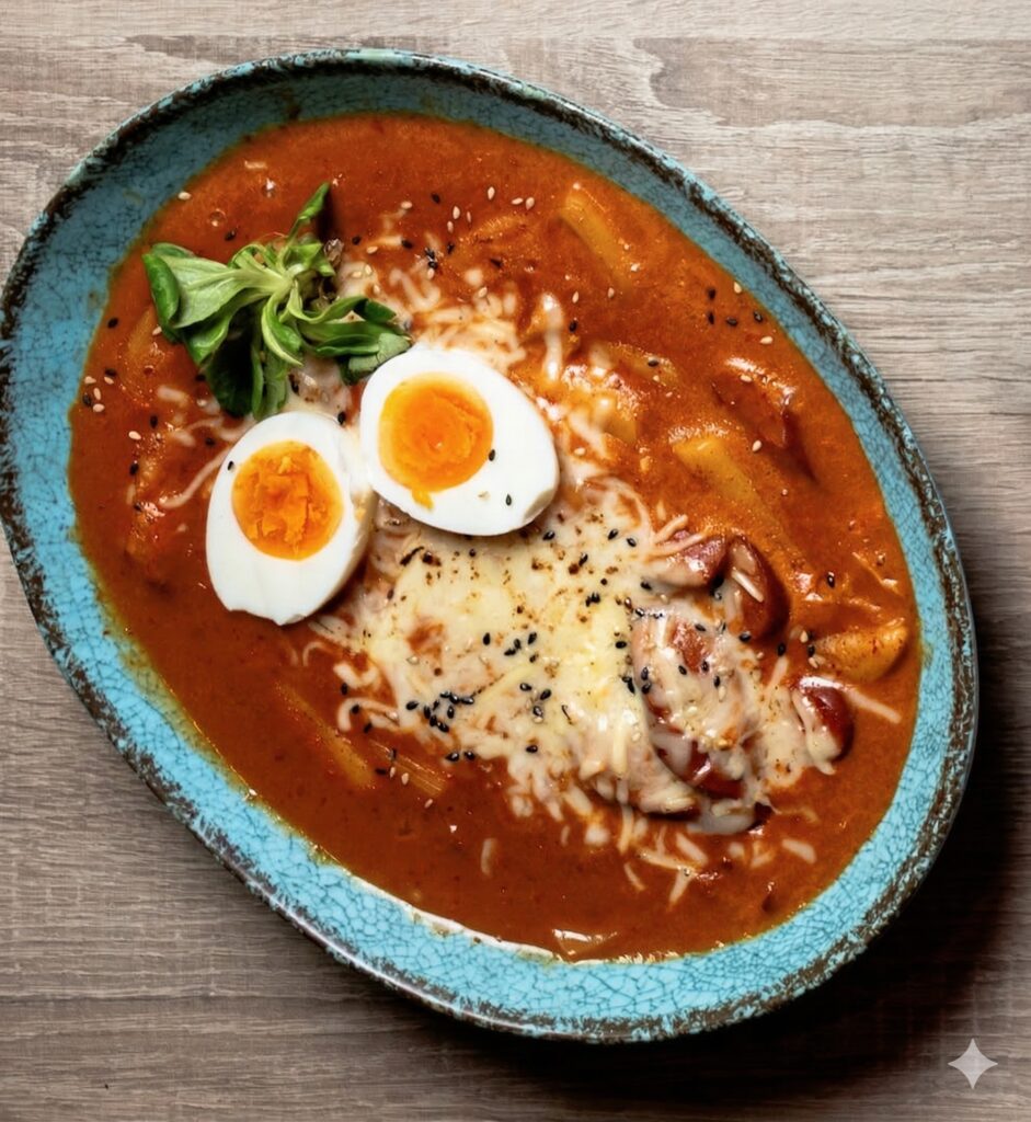 Buldak con Arroz: Delicioso pollo marinado con salsa gochujang que combina el dulce y picante, repollo, zanahoria, curry, cebolla y zanahoria acompañado con arroz Coreano. Nivel de Picante: 🌶️🌶️🌶️ Alergenos: Gluten, lácteos, sésamo, soja