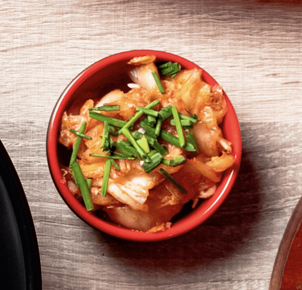 Kimchi Fried Rice: Simplemente ES – PEC – TA – CU – LAR. Arroz frito salteado con pollo y nuestro espectacular kimchi casero se combinan para dar lugar a este típico plato de la cocina coreana. Nivel de Picante: 🌶️🌶️🌶️ Alérgenos: Pescado, Lácteo, Huevo, Sésamo y Soja. Gluten.